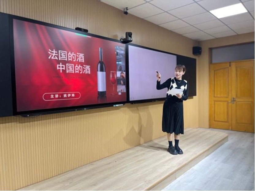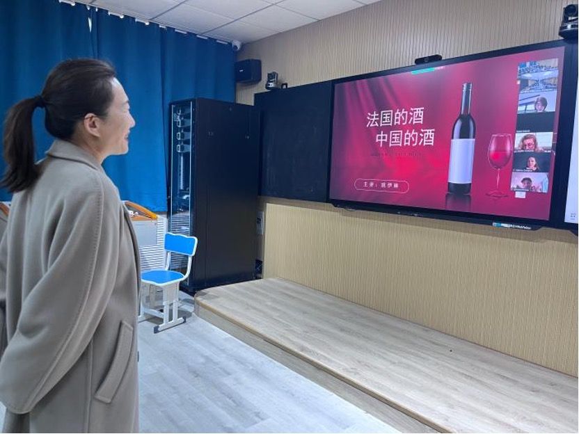 在精心设计的课堂上,学员们跟随姚伊琳老师的讲授,由浅入深,层层推进,学会了用简单的中文表达他们所熟知的葡萄酒基本知识;讲到葡萄酒酿制工艺环节时,学员们对专业技能对应的中文词汇非常感兴趣,线上线下课堂互动频繁;课程最后导向中国的酒文化,并以苏轼的千古名句“明月几时有,把酒问青天”结束,成功地将中文与传统文化、职业技能融合,赢得了法国校方和学员的高度肯定。