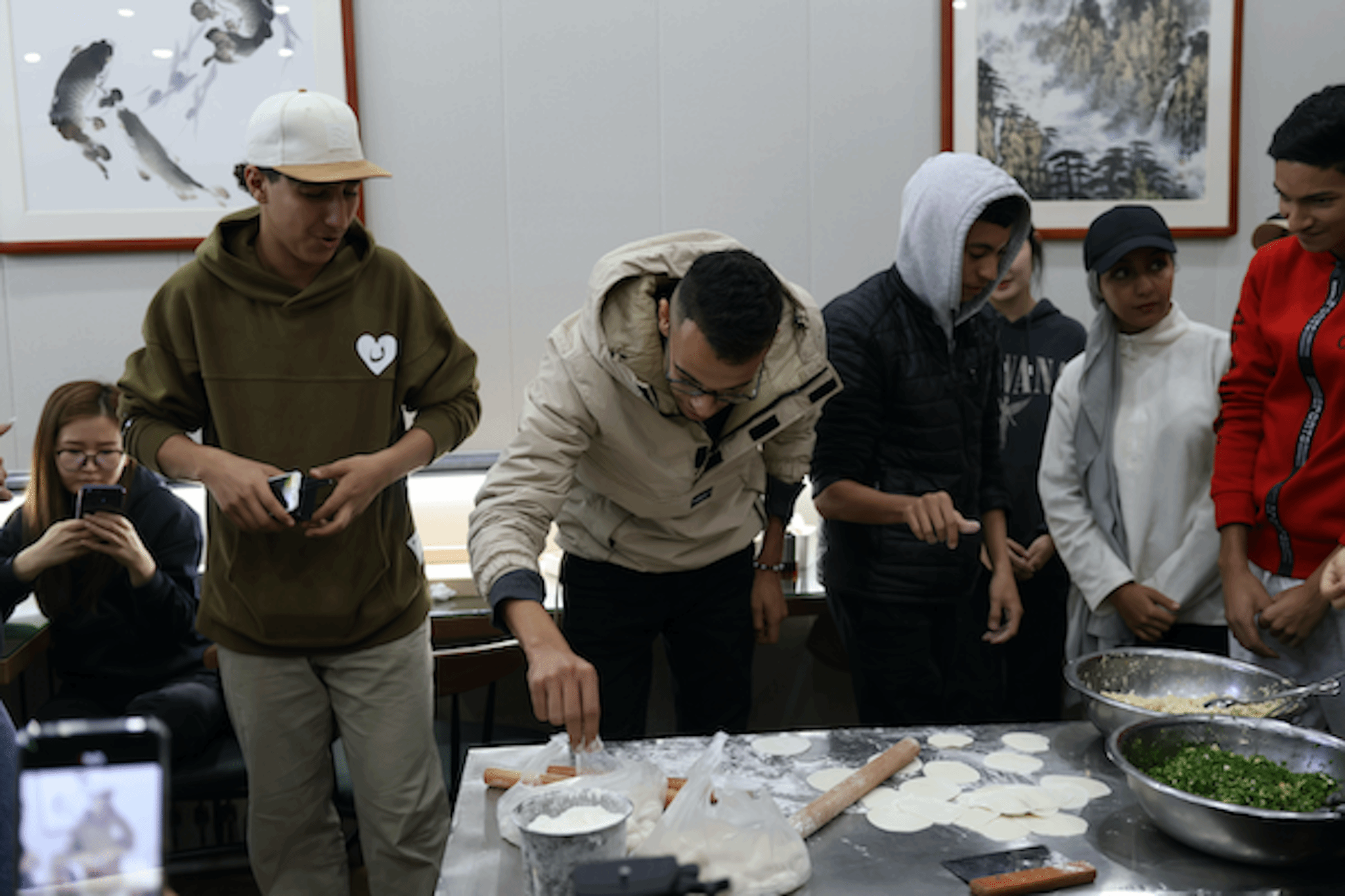 活动现场,李毓娣与老师们为留学生介绍了饺子的由来和饺子在北方人餐桌上的重要地位,手把手教授留学生和面、拌馅、擀皮儿、包饺子的基本技巧,在老师们的悉心指点下,留学生对饺子制作非常感兴趣,认真学习、踊跃尝试、分工明确、热闹非凡。在热气腾腾的饺子中,留学生们尽情享受着劳动果实,整个餐厅弥漫着其乐融融的氛围。