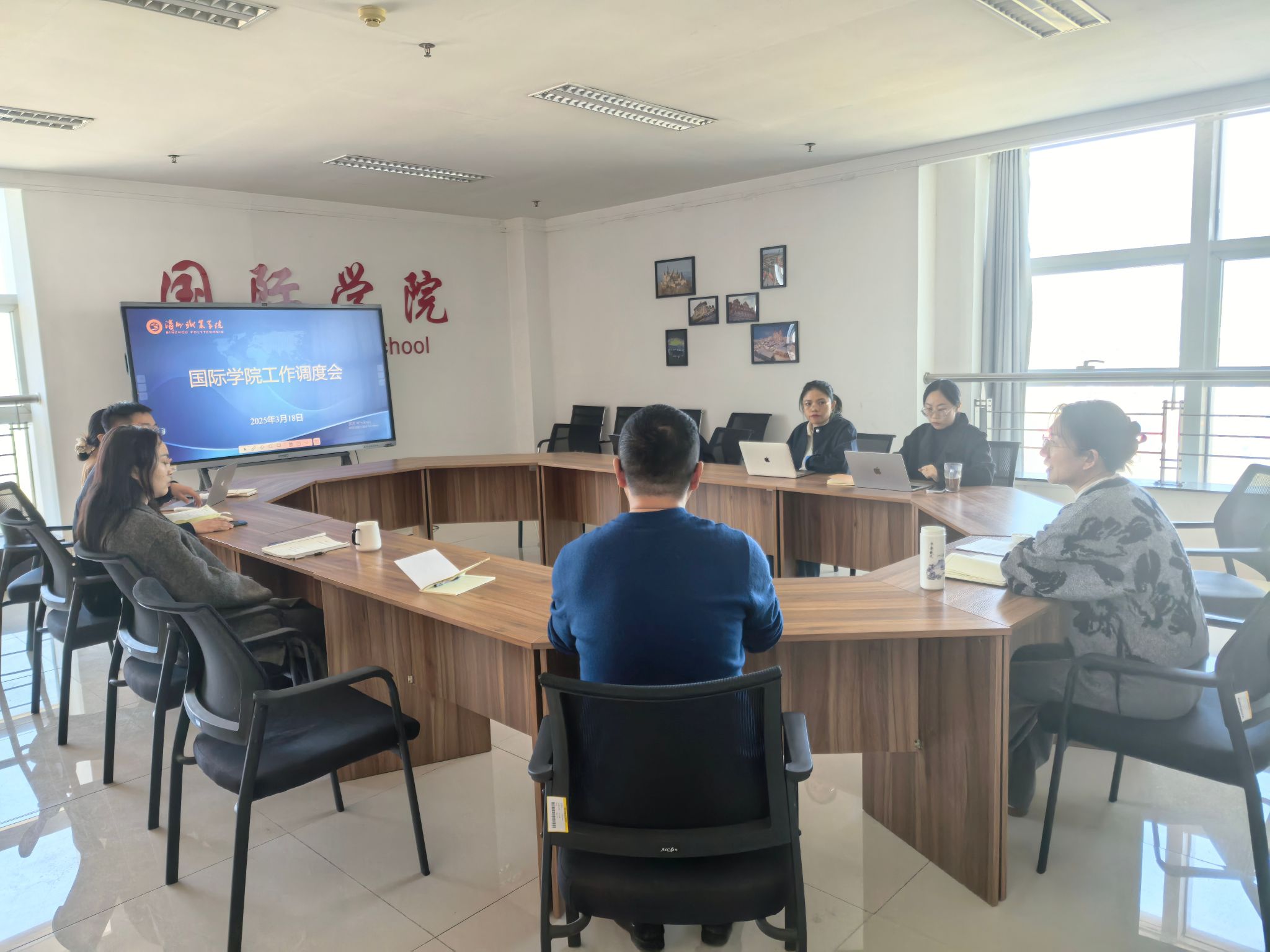 为扎实推进国际化办学业务标准化建设,提升伟德国际victor·1946源自工作人员综合能力,3月18日,伟德国际victor·1946源自召开2025年度工作调度会,启动“能力提升月”活动。伟德国际victor·1946源自院长、国际交流与合作处处长李毓娣主持会议并作工作部署,各科室负责人及相关教职工参加会议。