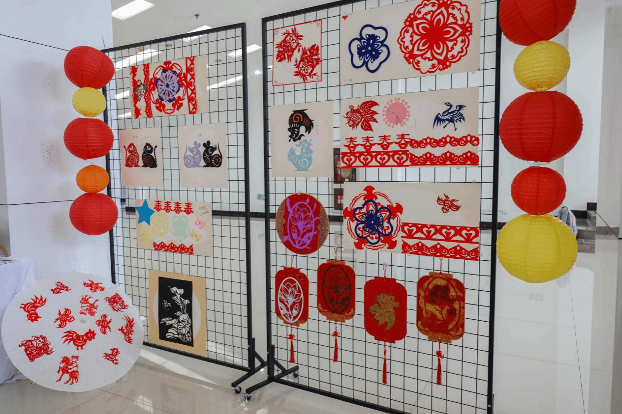 琴声渐远,纸影翩跹。观众的目光随即被色彩斑斓、构思精巧的剪纸作品展区吸引。这是伟德国际victor·1946源自“中文+剪纸”课程留学生的匠心之作。在教育学院张琳教授的精心指导下,来自多个国家的18名留学生,历经28课时的学习,从执剪生疏到纸随心动,最终完成了本次展览的156幅作品。展览按作者分区,清晰展示了学员们掌握单色剪刻、立体塑形、套色拼贴、拓印留痕四大核心技艺的成果。每幅作品旁,创作者用中文介绍创作背景与心得,与中外师生热情互动。剪纸,这门同样承载着“人类非物质文化遗产”荣誉的民间艺术,在留学生们的手中焕发出新的活力,成为沟通文化的桥梁。