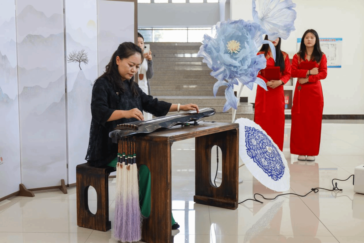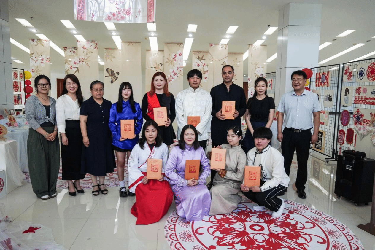 展演活动的高潮是隆重的颁奖仪式。为表彰留学生在非遗传承学习中的卓越表现和取得的显著进步,活动特别为在古琴演奏和剪纸创作中表现突出的学员颁发了奖项。获奖学员依次上台,从领导手中接过荣誉证书。现场掌声雷动,既是对学员才华与努力的褒奖,也是对孙晓鹏、张琳两位指导教师在非遗教学、研究、传承方面辛勤付出与专业贡献的崇高敬意。